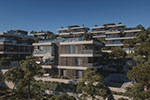 Both projects are located on the northern shore of the bay, which means that the buildings have a sunny southern orientation and open views of the bay and the old part of the village. On the eastern plot we planned 9 apartment buildings and 7 apartment buildings on the western plot, with 6 apartments in each building. Our main goal was to integrate architecture into existing landscape as much as possible using the same design elements in all the buildings.