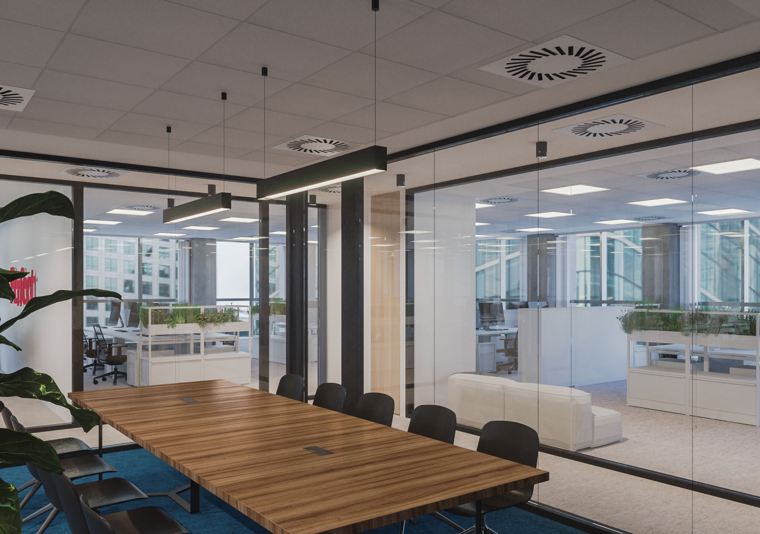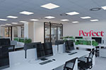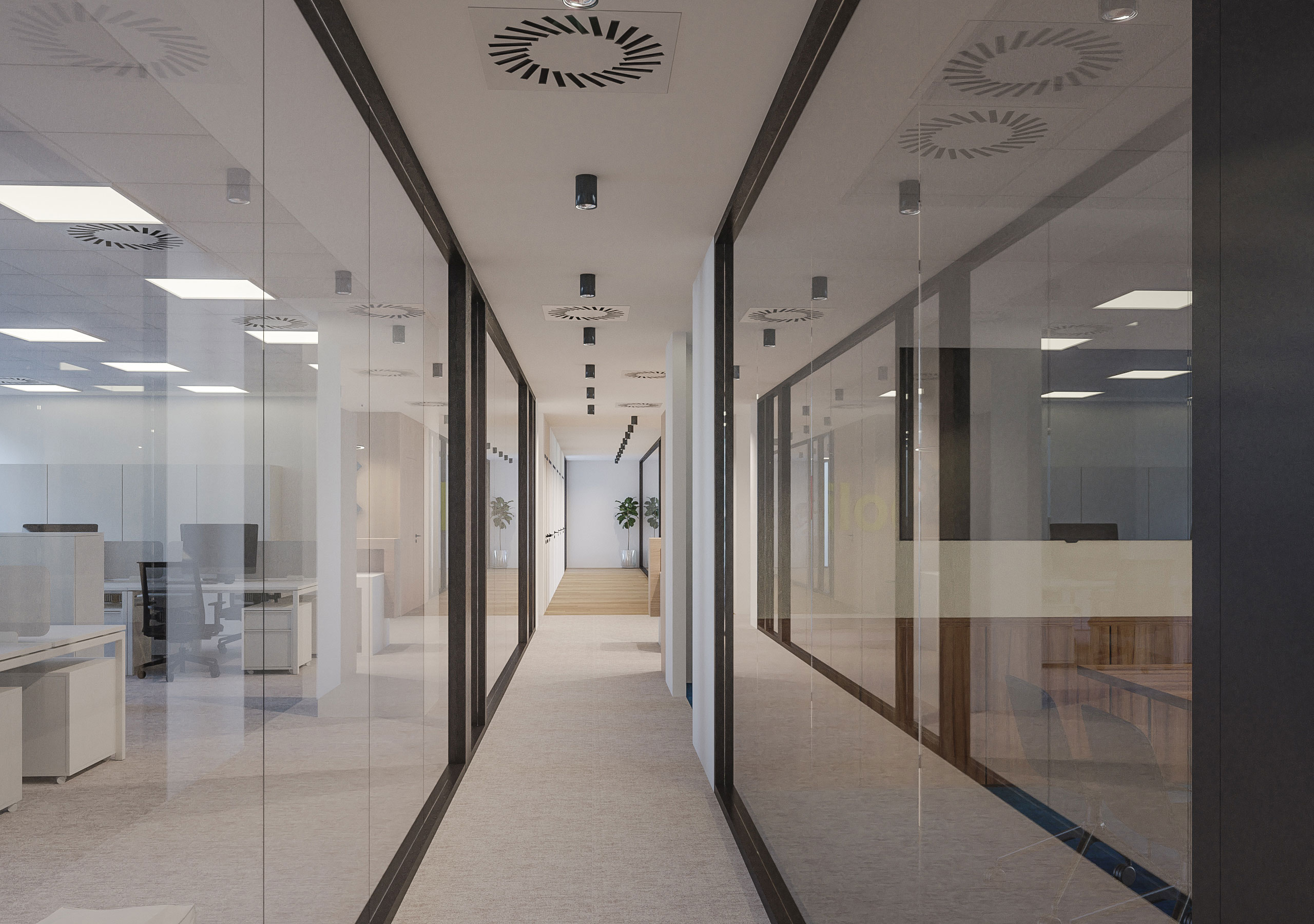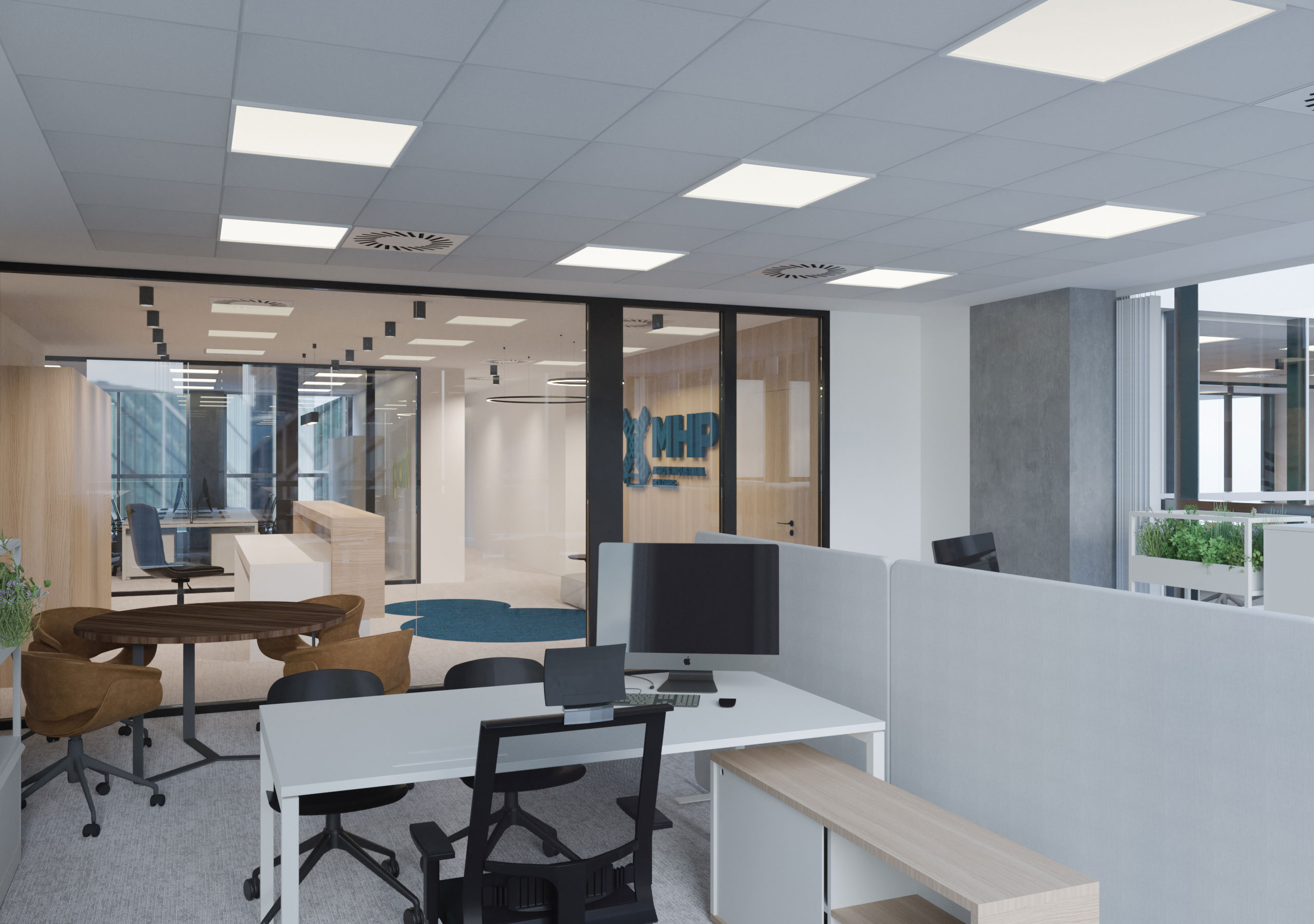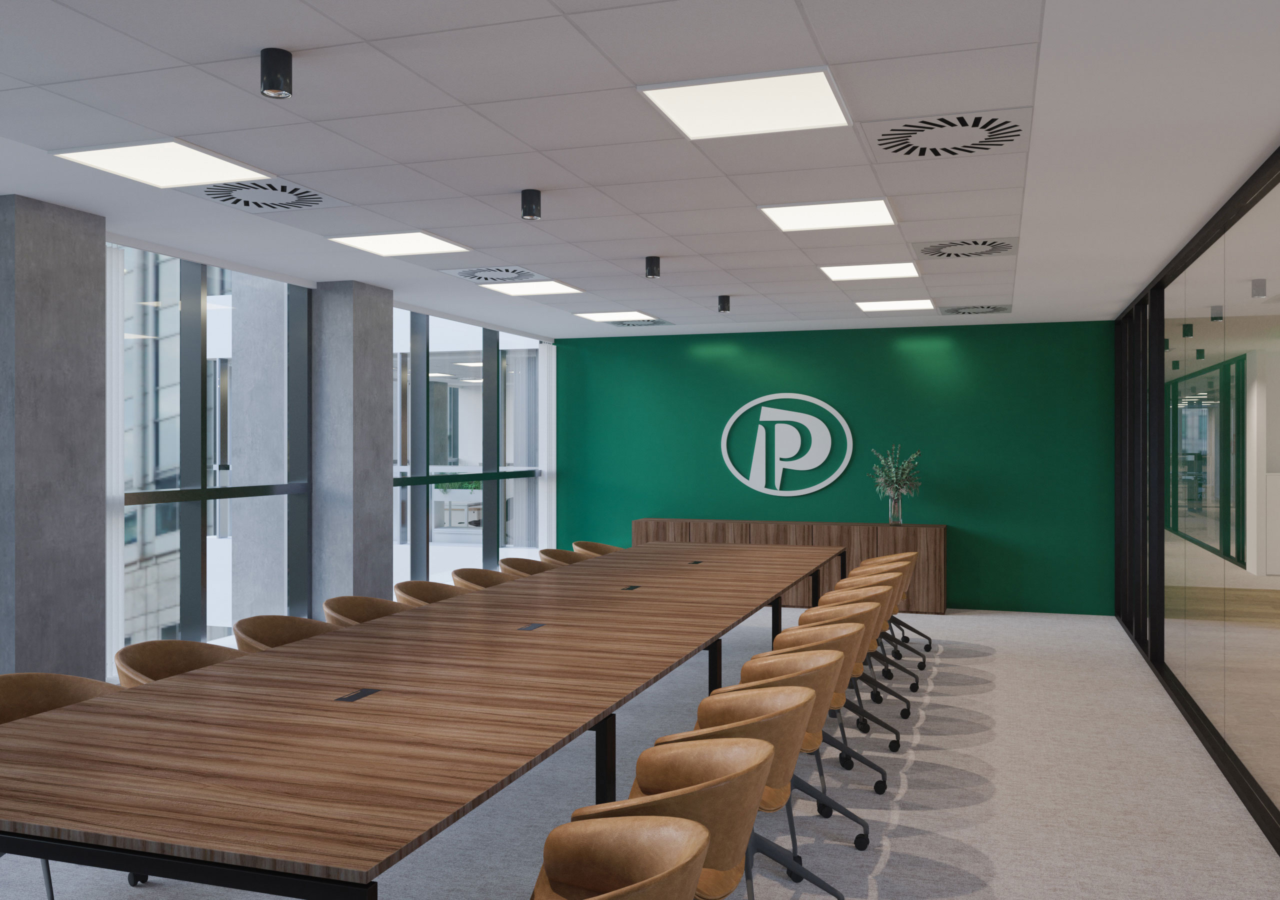 Designated office space for the new Perutnina Ptuj Belgrade branch is transformed to accommodate a mixed program of several departments combining open and closed space concept. General design is customized according to the brand principles acknowledging also the affiliation of Perutnina brand to the MHP group.